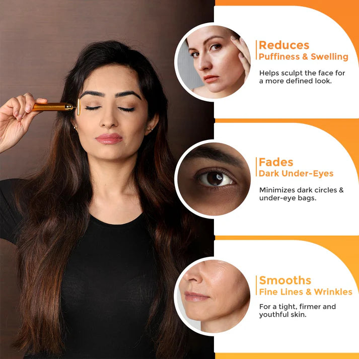 24K Gold Energy Beauty Bar Electric Facial Massage Roller