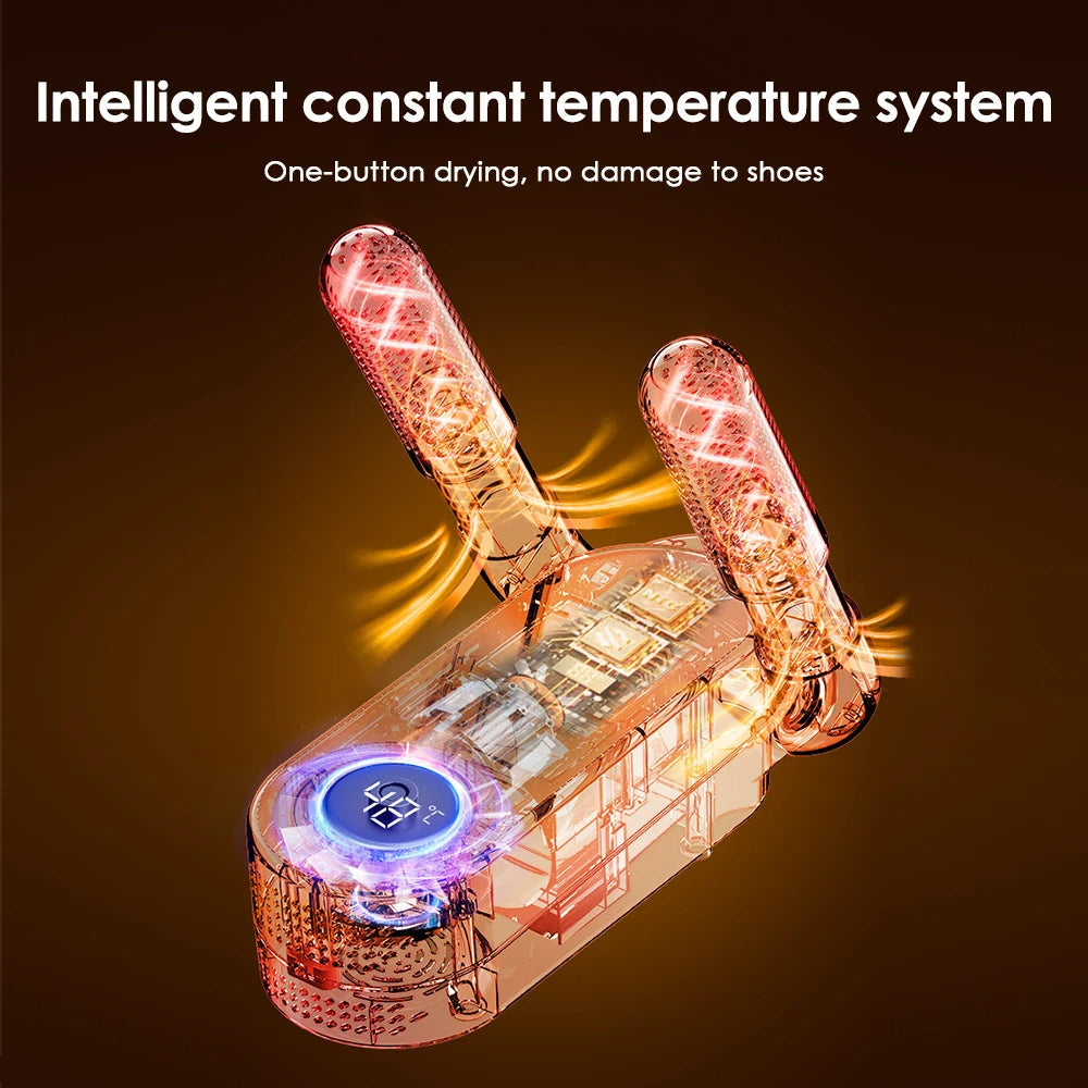 Our boot dryer features a 360° three-dimensional heating design that penetrates deep inside shoes. Your shoes dry faster and more evenly—say goodbye to wet, uncomfortable shoes!